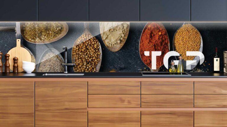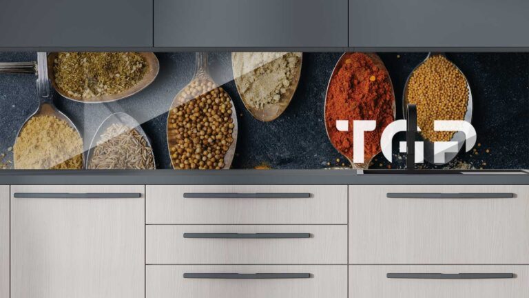 Panou sticla bucatarie, securizat termic după printare, nu este afectat de expunerea la apă, caldură sau solvenți, fiind ideal pentru protecția pereților din bucătărie.