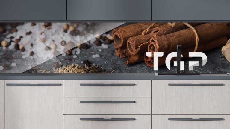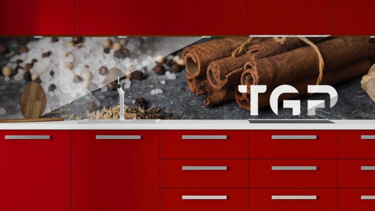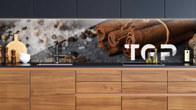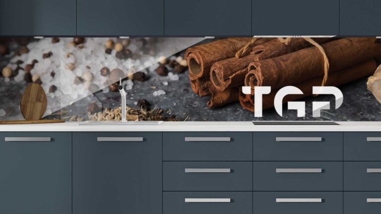 Panou sticla bucatarie, securizat termic după printare, nu este afectat de expunerea la apă, caldură sau solvenți, fiind ideal pentru protecția pereților din bucătărie.
