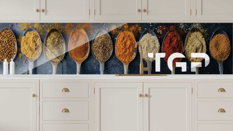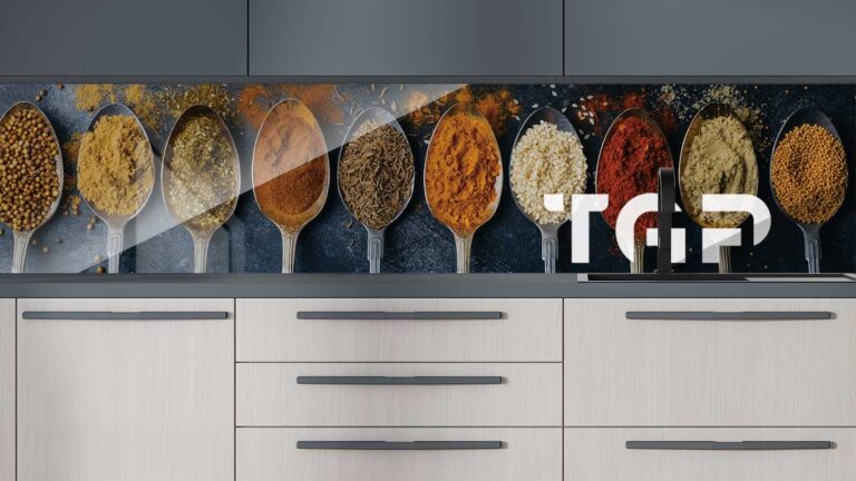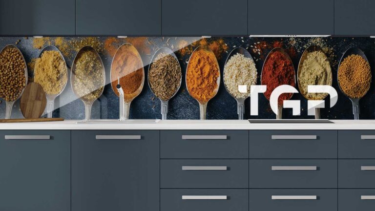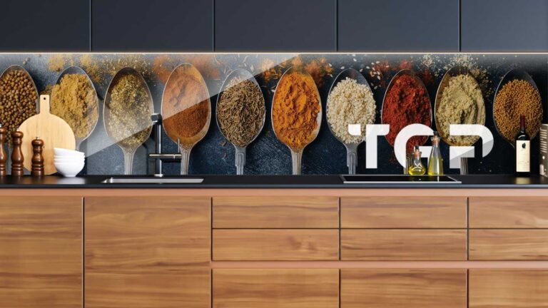 Panou sticla bucatarie, securizat termic după printare, nu este afectat de expunerea la apă, caldură sau solvenți, fiind ideal pentru protecția pereților din bucătărie.