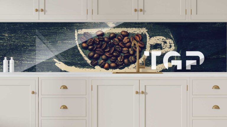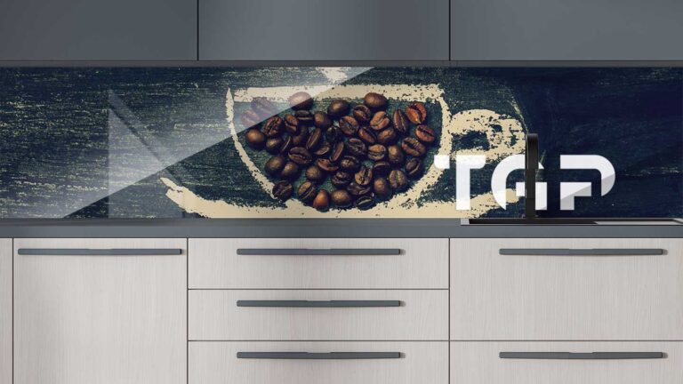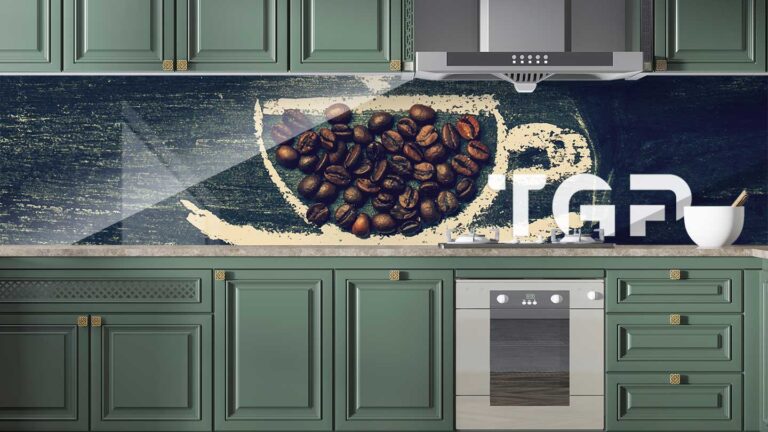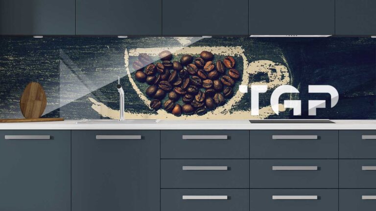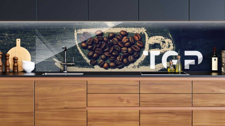 Panou sticla bucatarie, securizat termic după printare, nu este afectat de expunerea la apă, caldură sau solvenți, fiind ideal pentru protecția pereților din bucătărie.