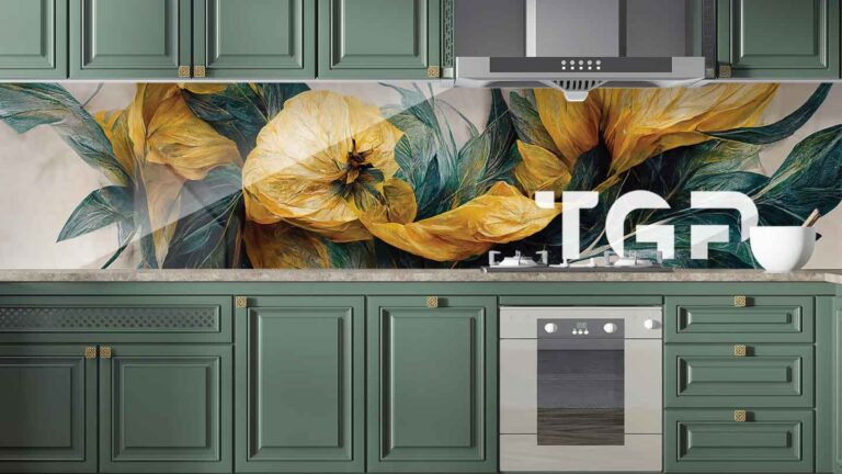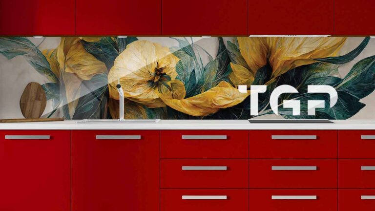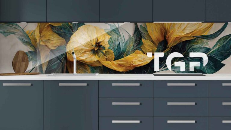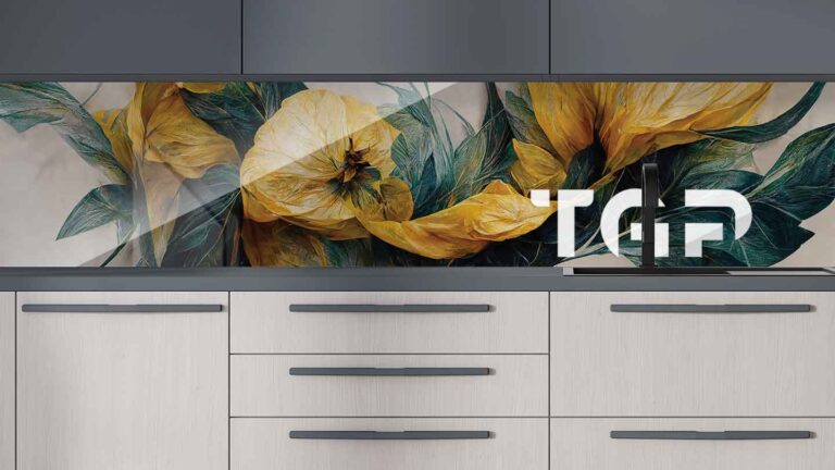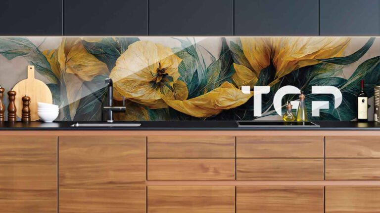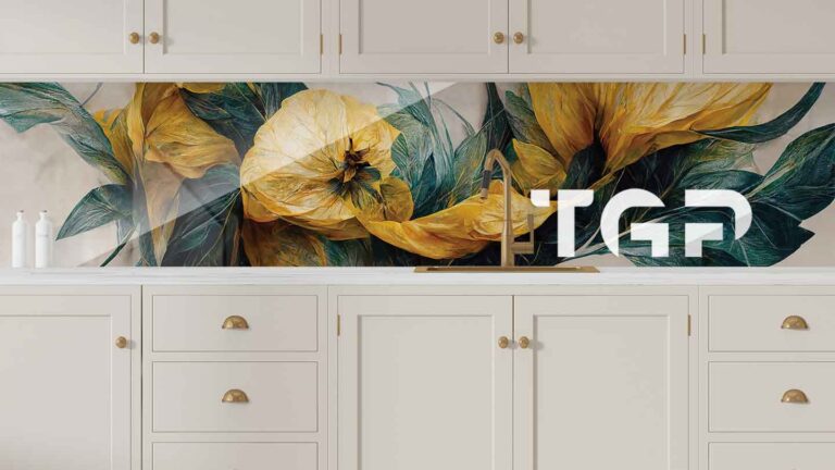 Panou sticla bucatarie, securizat termic după printare, nu este afectat de expunerea la apă, caldură sau solvenți, fiind ideal pentru protecția pereților din bucătărie.