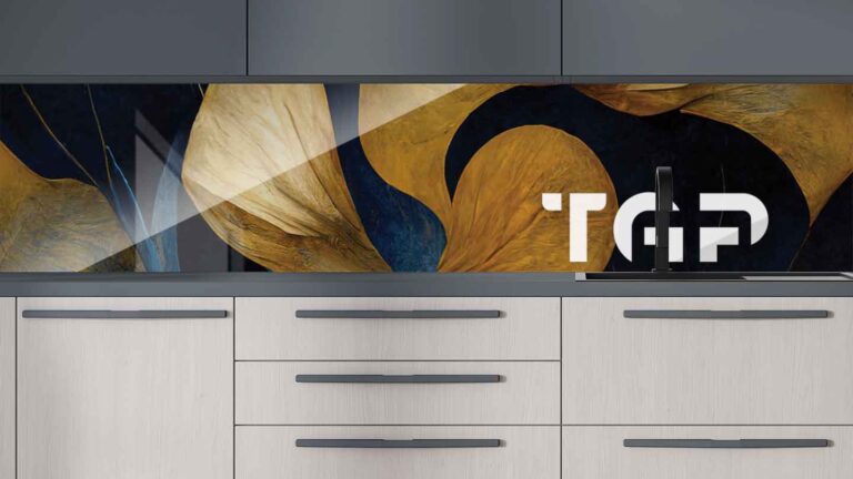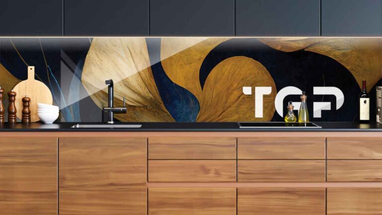 Panou sticla bucatarie, securizat termic după printare, nu este afectat de expunerea la apă, caldură sau solvenți, fiind ideal pentru protecția pereților din bucătărie.