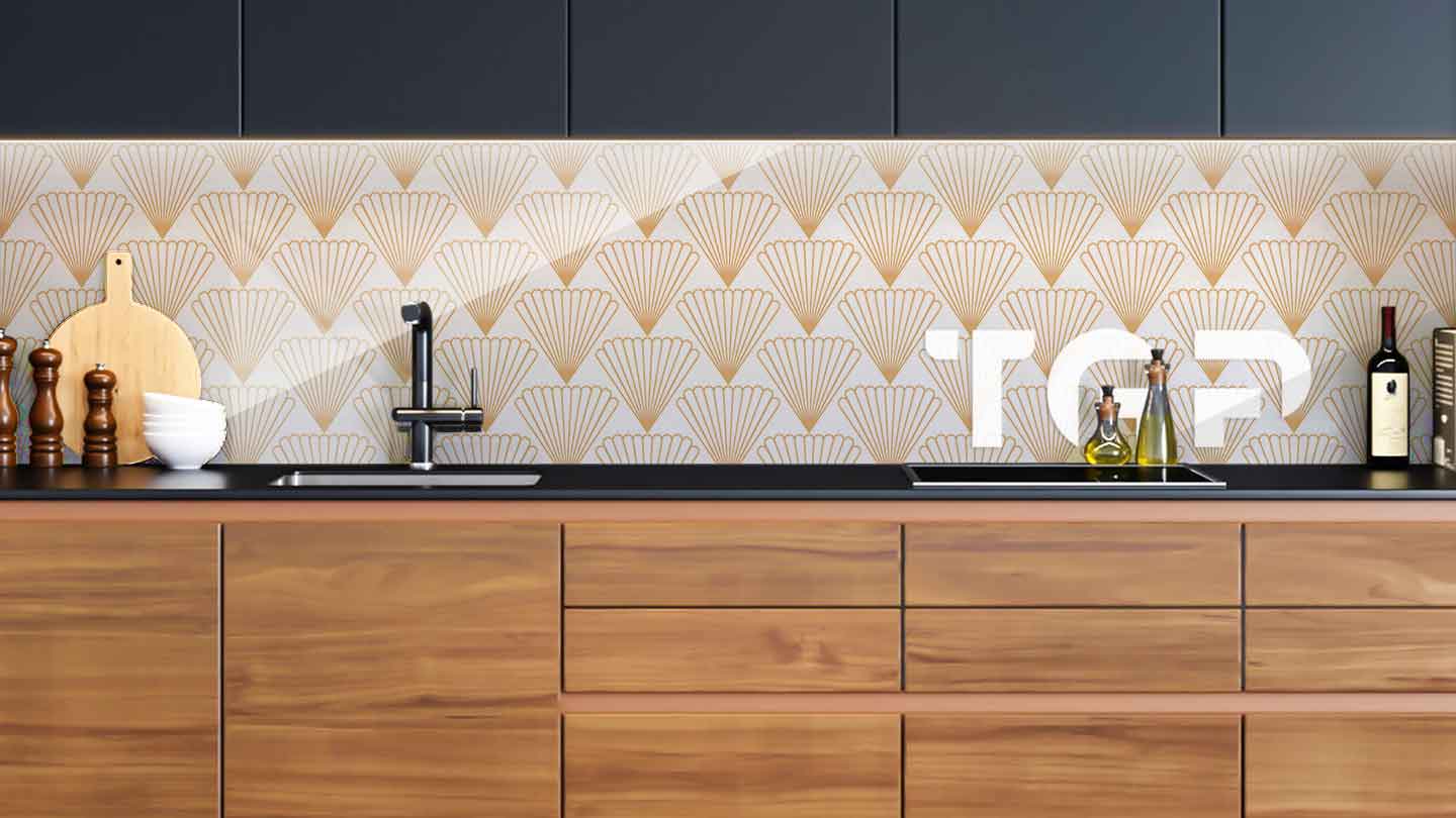 Protectie perete bucatarie, securizată termic după printare, nu este afectată de expunerea la apă, caldură sau solvenți, fiind ideală pentru folosirea în bucătărie.