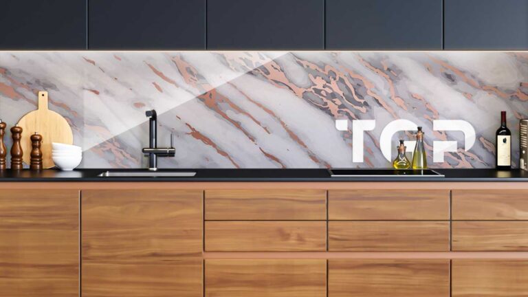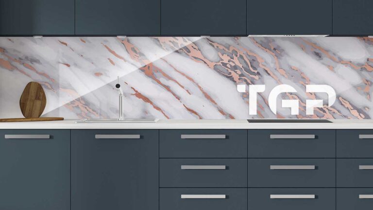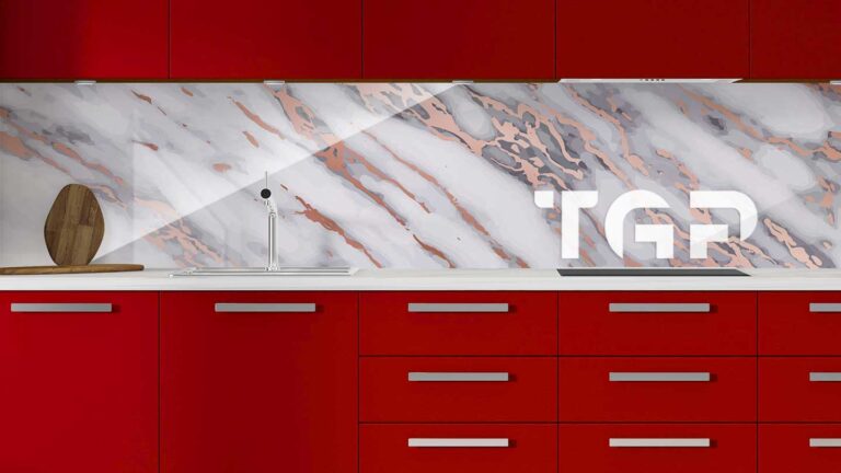 Panou sticla bucatarie, securizat termic după printare, nu este afectat de expunerea la apă, caldură sau solvenți, fiind ideal pentru protecția pereților din bucătărie.