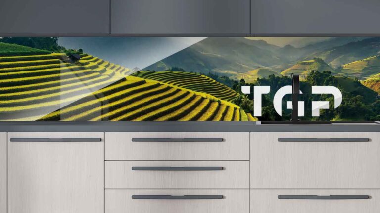 Panou antistrop bucatarie, securizat termic după printare, nu este afectat de expunerea la apă, caldură sau solvenți, fiind ideal pentru protecția pereților din bucătărie.