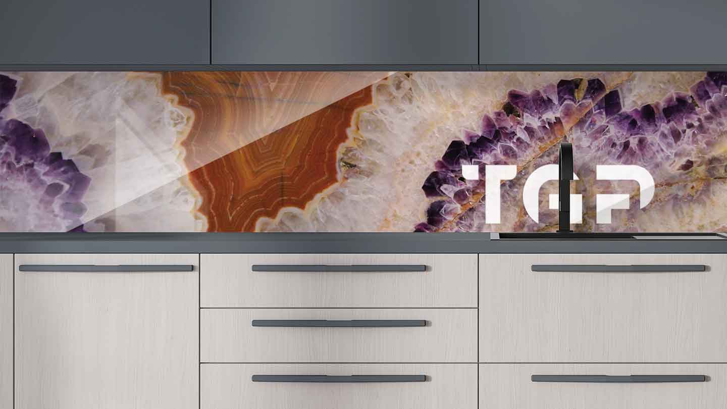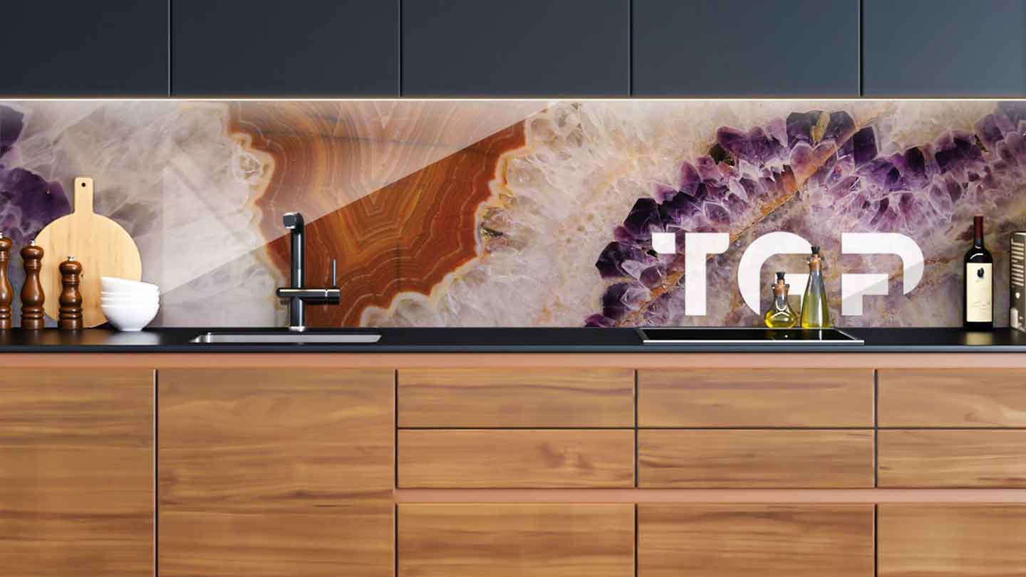 Contrablat sticla printata pentru o bucătărie prețioasă