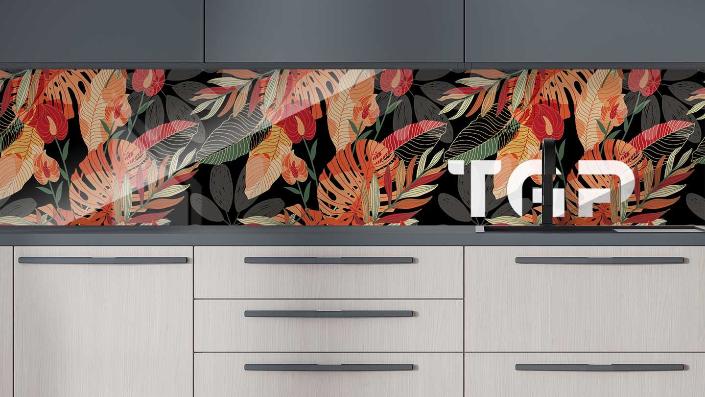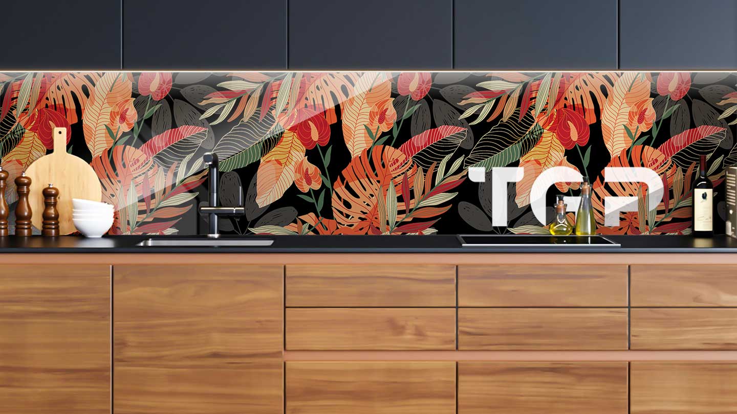 Protectie perete bucatarie, securizată termic după printare, nu este afectată de expunerea la apă, caldură sau solvenți, fiind ideală pentru folosirea în bucătărie.