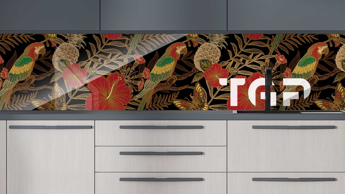 Contrablat sticlă printată pentru o bucătărie premium
