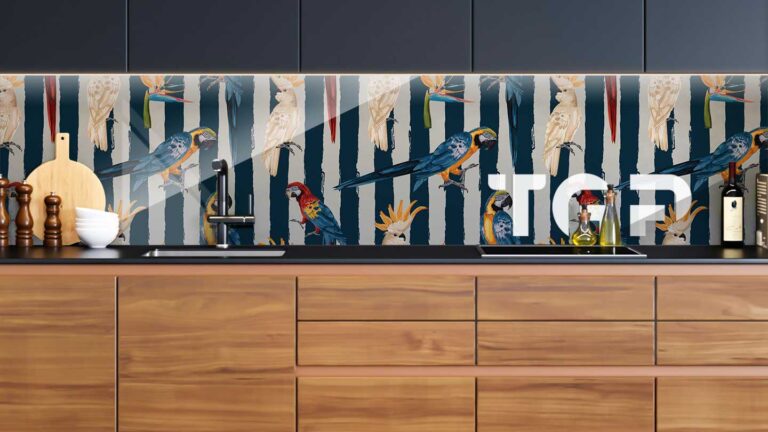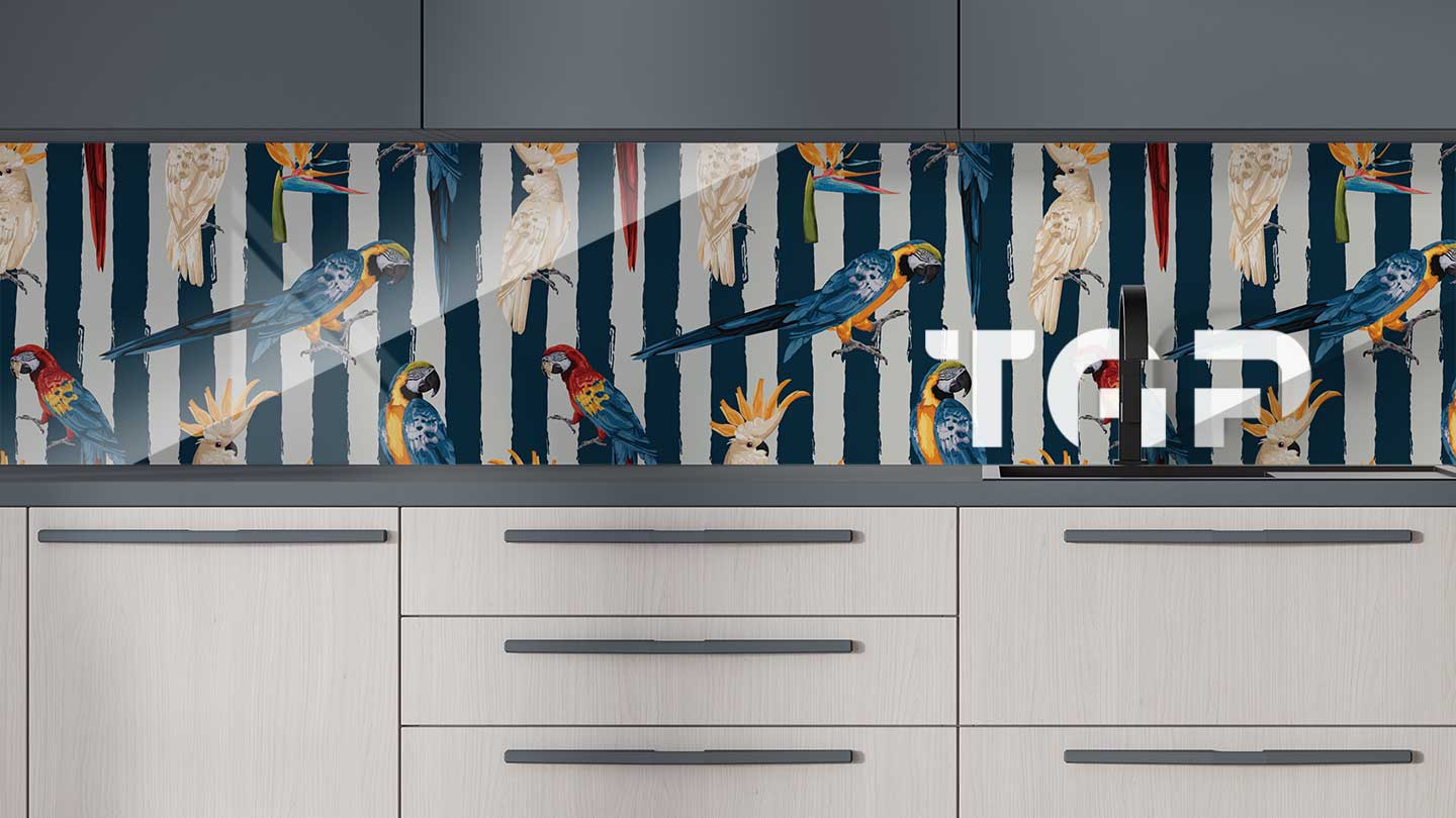 Protectie perete bucatarie, securizată termic după printare, nu este afectată de expunerea la apă, caldură sau solvenți, fiind ideală pentru folosirea în bucătărie.