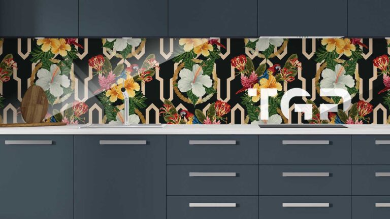 Protectie perete bucatarie, securizată termic după printare, nu este afectată de expunerea la apă, caldură sau solvenți, fiind ideală pentru folosirea în bucătărie.