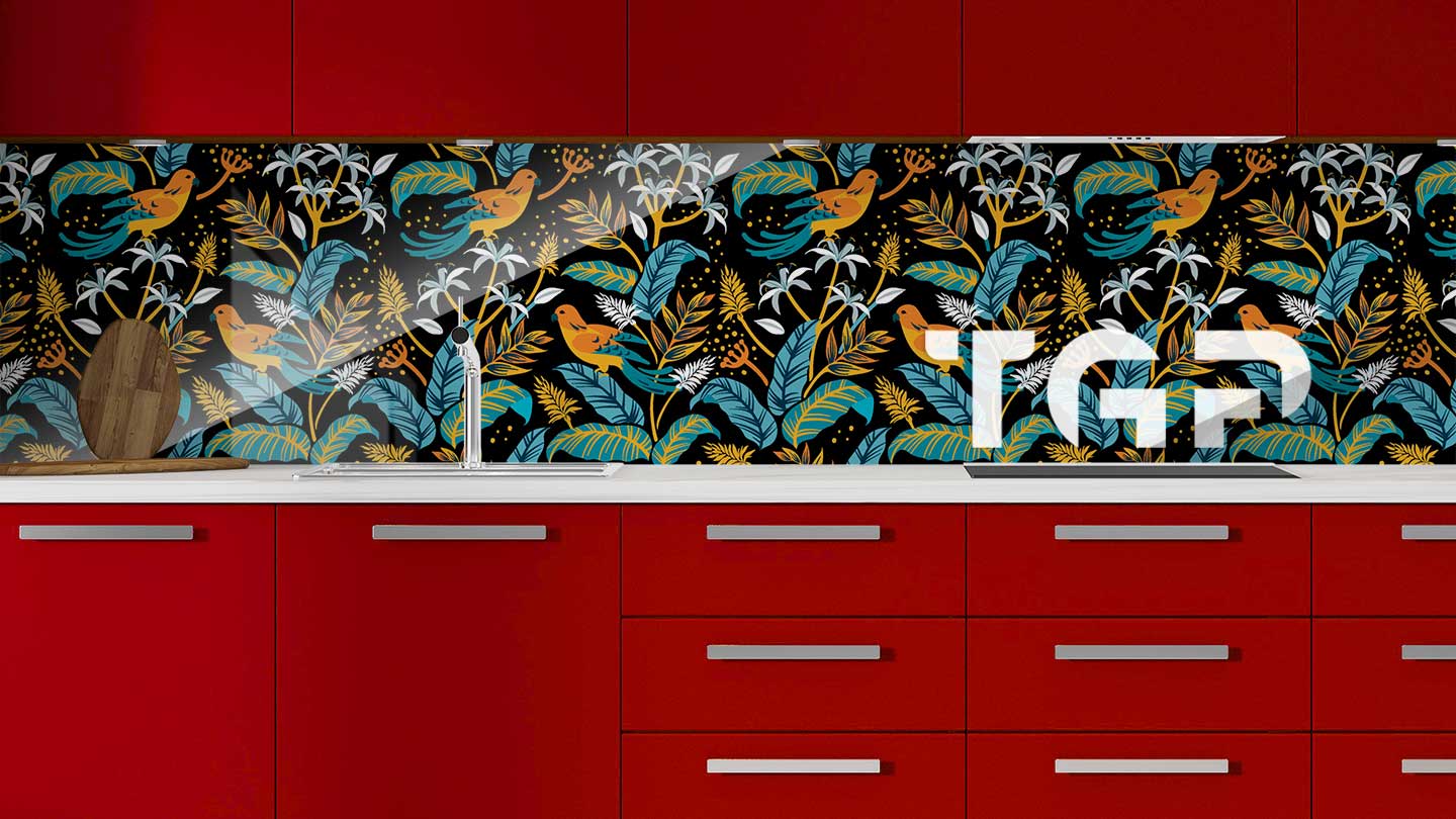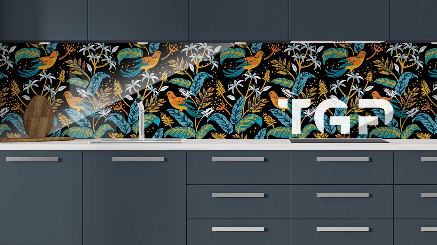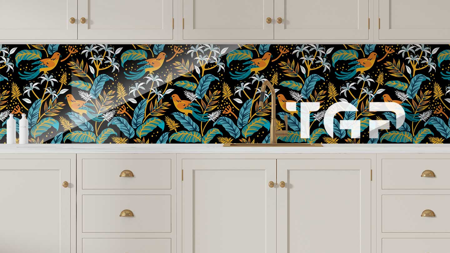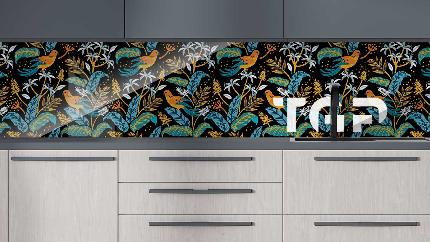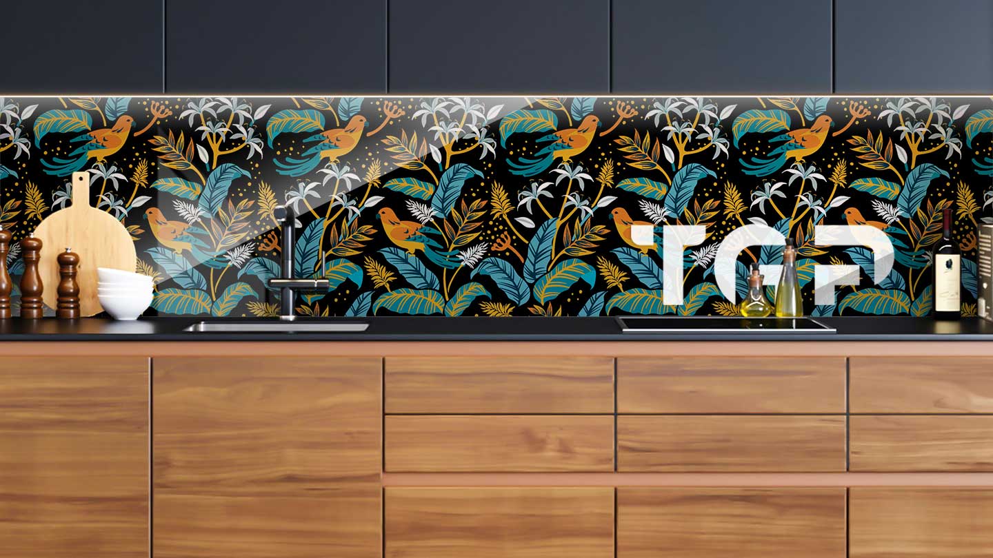Protectie perete bucatarie, securizată termic după printare, nu este afectată de expunerea la apă, caldură sau solvenți, fiind ideală pentru folosirea în bucătărie.