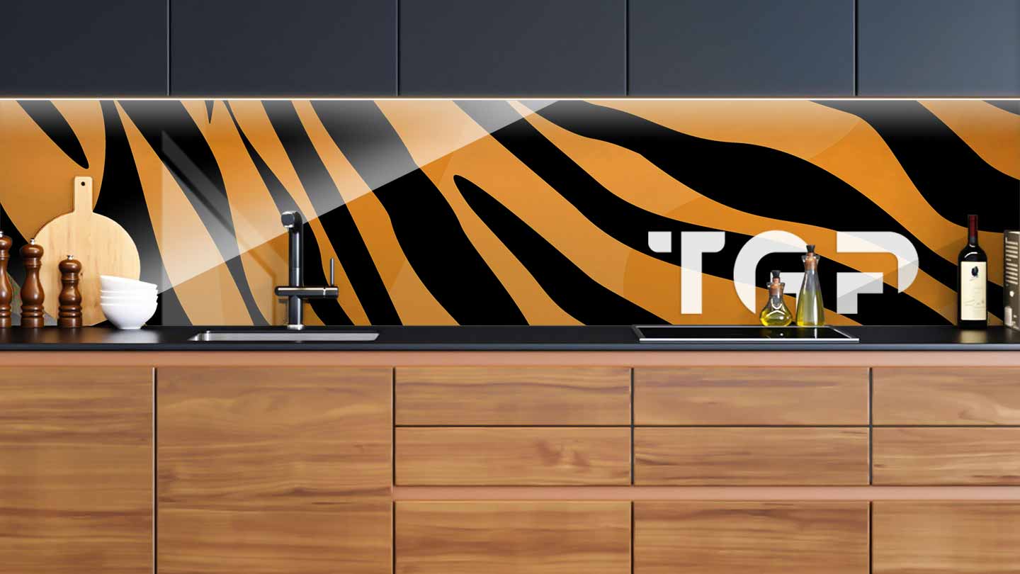Protectie perete aragaz, securizată termic după printare, nu este afectată de expunerea la apă, caldură sau solvenți, fiind ideală pentru folosirea în bucătărie.